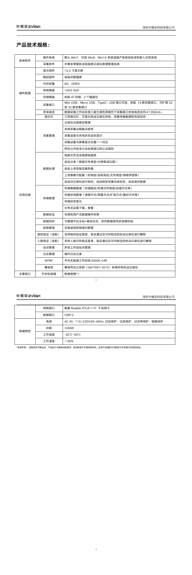含中维安单警执法视音频记录仪数据管理系统