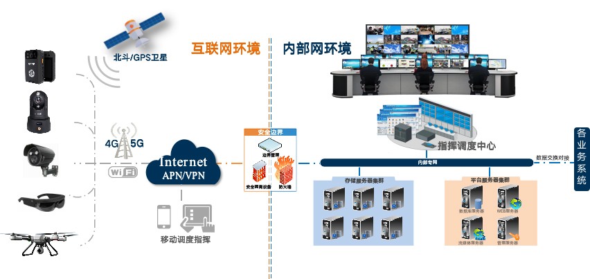 The integrated law enforcement solution is guided by the application needs of law enforcement industries such as public security, relying on 5G/4G/3G wireless network, comprehensively applying a variety of information technologies, fully integrating and sharing data and information, building a unified law enforcement integrated information system platform, and can integrate with 110 receiving and handling police system, police integrated system and other business systems according to actual business needs. Provide information and technical support for "efficient law enforcement, standardized law enforcement, civilized law enforcement, clean law enforcement, and harmonious law enforcement". Through the Zhongwei 4G law enforcement recorder, emergency control ball and intelligent peripherals and other terminals to help law enforcement personnel deal with law enforcement tasks, report law enforcement content, real-time return of law enforcement scene audio and video, GIS information, one-click call command center, cluster between law enforcement personnel, two-way audio and video, etc. We will continue to improve the modern management of comprehensive law enforcement.